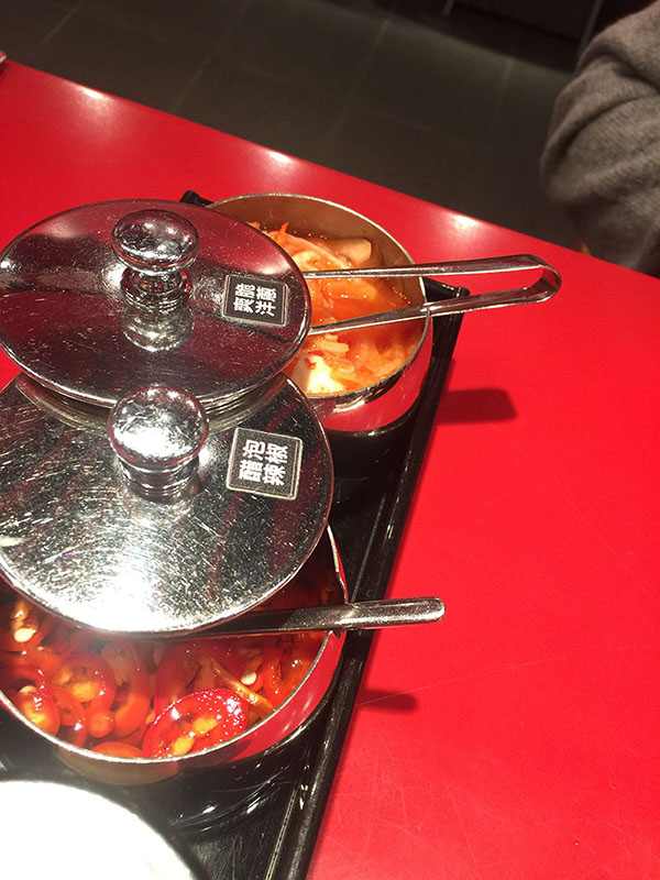 ▲桌邊都會有的配菜,醋泡辣椒我就不好意思食用啦!