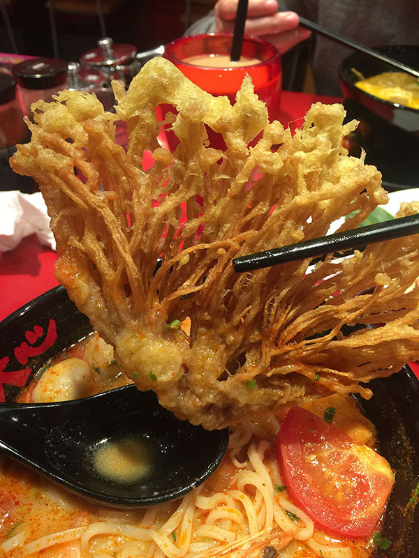 ▲這一大片放在湯裡的東西是炸金針,泡湯的部分會變成裹粉軟軟的